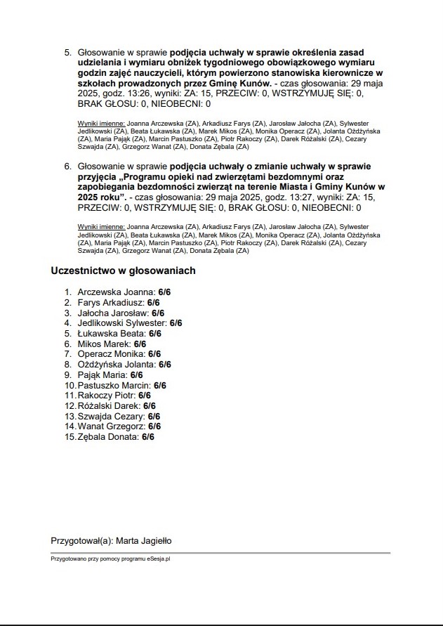– (…) Z przykrością należy stwierdzić, że w wielu przypadkach – jak w omawianym – Państwo nie korzystają z tego uprawnienia lub nie uczestniczą w obradach – stwierdził Lech Łodej. Zaapelował też, by w przyszłości wątpliwości zgłaszać na bieżąco, w trybie roboczym, co jego zdaniem umożliwi „sprawniejsze i rzetelniejsze sprawowanie funkcji radnego oraz wzmocni transparentność działań organów gminy”.