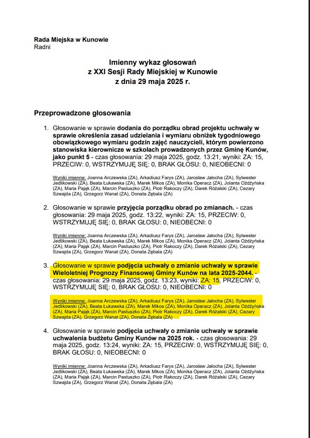 – Dziwi więc fakt, iż Radni Rady Miejskiej w Kunowie wyrażają zaskoczenie przebudową obiektu, podczas gdy sami podjęli uchwałę Nr XXI.125.2025 z dnia 29 maja 2025 r., dotyczącą Wieloletniej Prognozy Finansowej Gminy Kunów na lata 2025-2044 – napisał burmistrz.