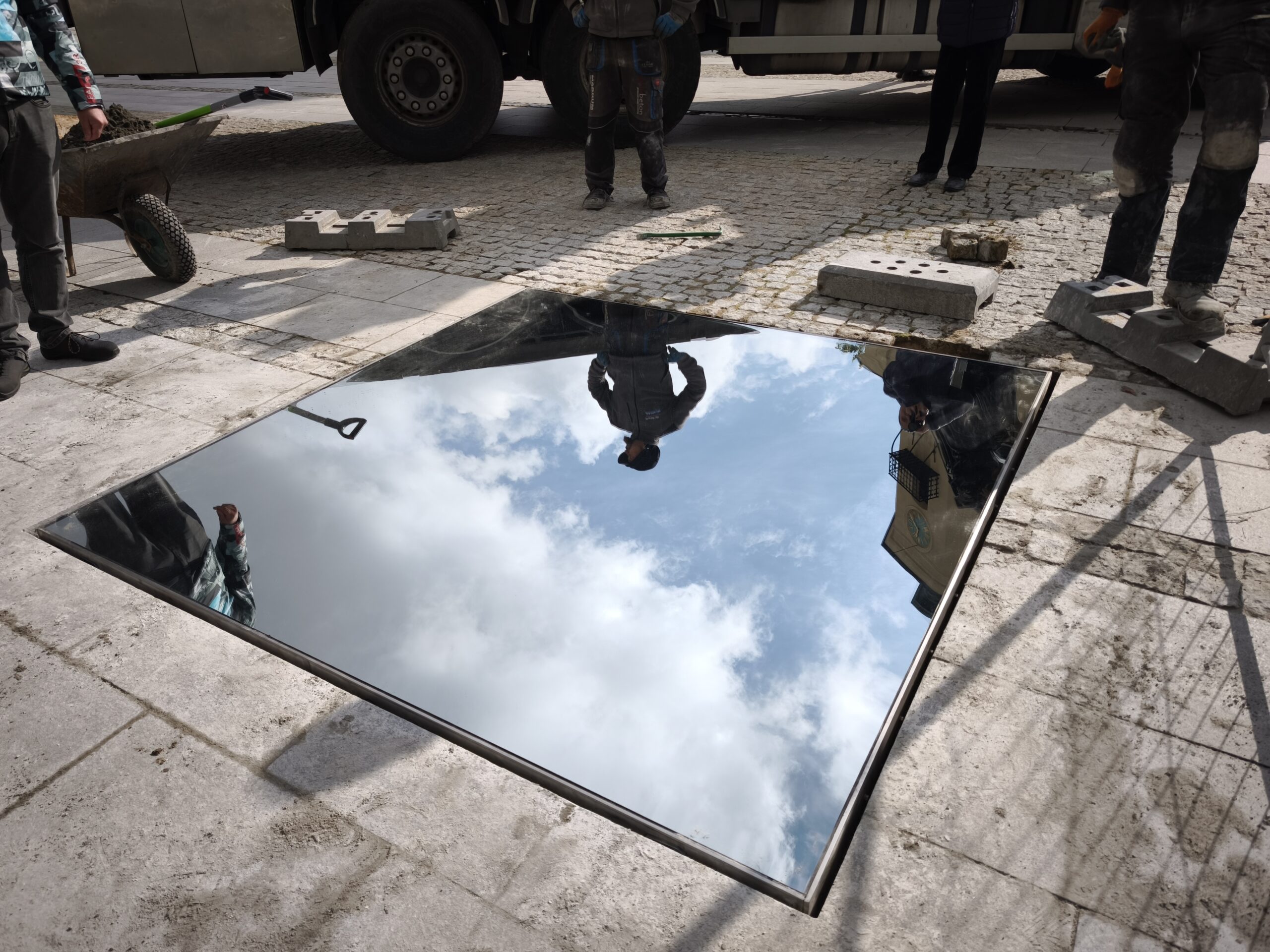 Lustro o wadze 150 kg wykonano z pancernego szkła, dzięki czemu można po nim bezpiecznie chodzić. Jak mówił twórca, to przede wszystkim „wizualna sytuacja, która pozwala ludziom bawić się odbiciem i patrzeć na niebo z innej perspektywy”.