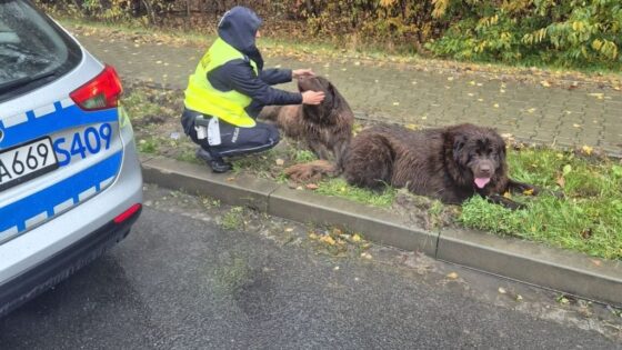 Zimne, mokre i zagubione. Policjanci z Ostrowca Św. pomogli dwóm czworonogom wrócić do domu