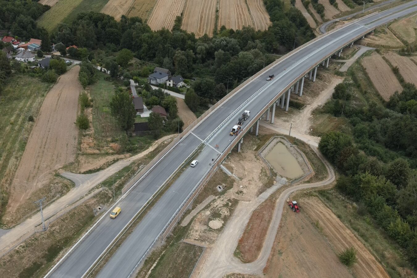 Gotowe są już kluczowe obiekty inżynieryjne: wiadukt węzłowy nad DK9, wiadukt w Tomaszowie, obiekt nad S74 w Jałowęsach oraz wiadukt w Okalinie. Oddano także trzy ronda łączące nową obwodnicę z DK9 i DK74.