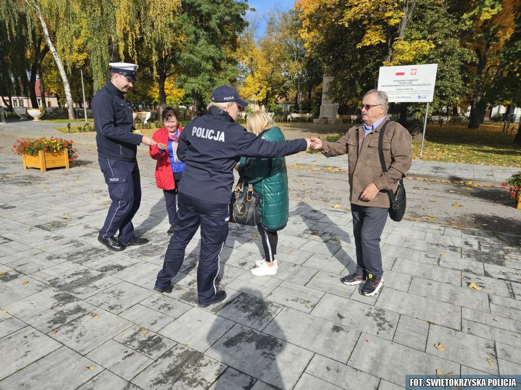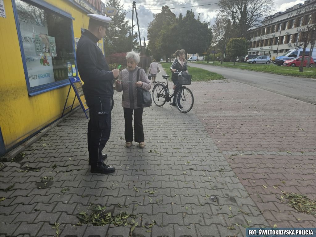 Jesienna aura nie sprzyja bezpieczeństwu na drogach. Wcześnie zapadający zmrok, mgła i deszcz sprawiają, że piesi i rowerzyści stają się niemal niewidoczni dla kierowców. Jeden mały odblask może uratować czyjeś życie. Przypominają o tym policjanci z Komendy Powiatowej Policji w Ostrowcu Świętokrzyskim, którzy rozdawali mieszkańcom powiatu elementy odblaskowe.